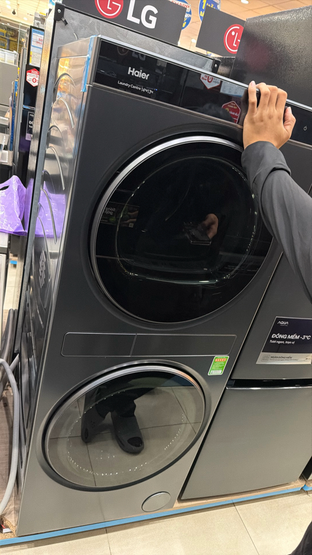 1 sản phẩm Tháp giặt sấy Haier Laundry Center Inverter giặt 14 kg - sấy 13 kg HWD140-BD14LCU1L(GN) đã sử dụng, trưng bày giá rẻ