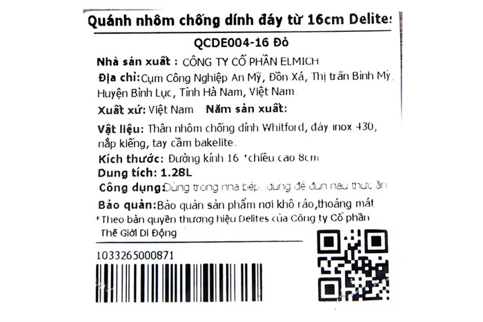 Thông số kỹ thuật Quánh nhôm chống dính nắp kính 16 cm Delites QCDE004-16