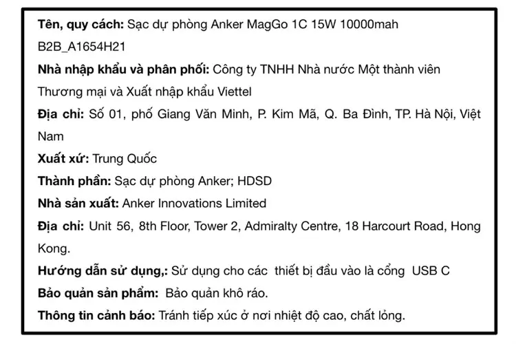 Thông số kỹ thuật Pin sạc dự phòng Polymer 10000mAh không dây Magnetic Qi2 Type C PD 27W Anker MagGo A1654