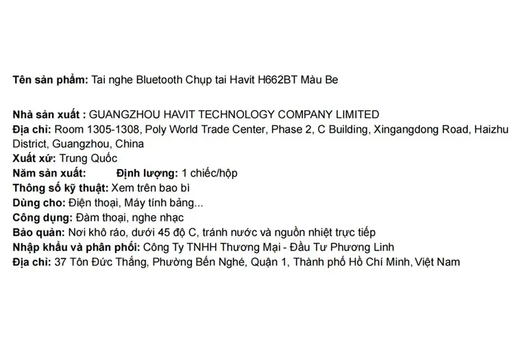 Thông số kỹ thuật Tai nghe Bluetooth Chụp Tai Havit H662BT
