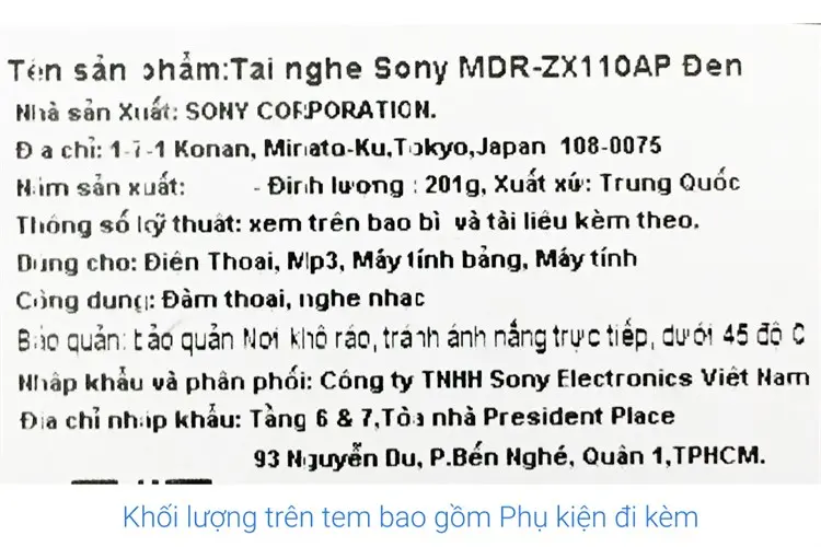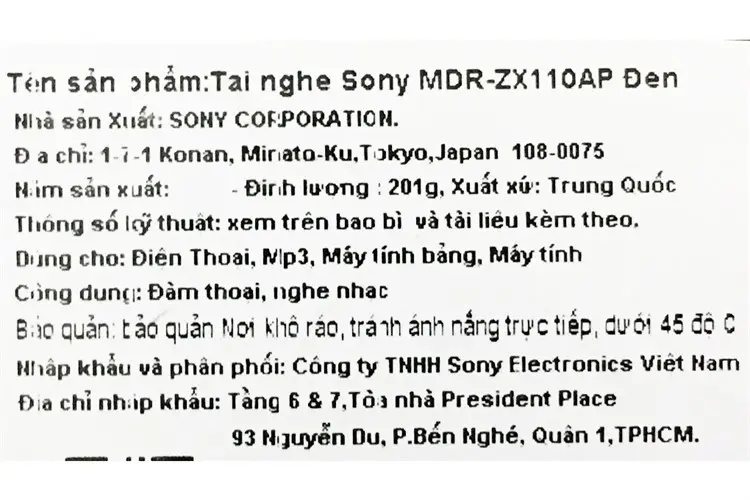 Thông số kỹ thuật Tai nghe chụp tai Sony MDR-ZX110AP
