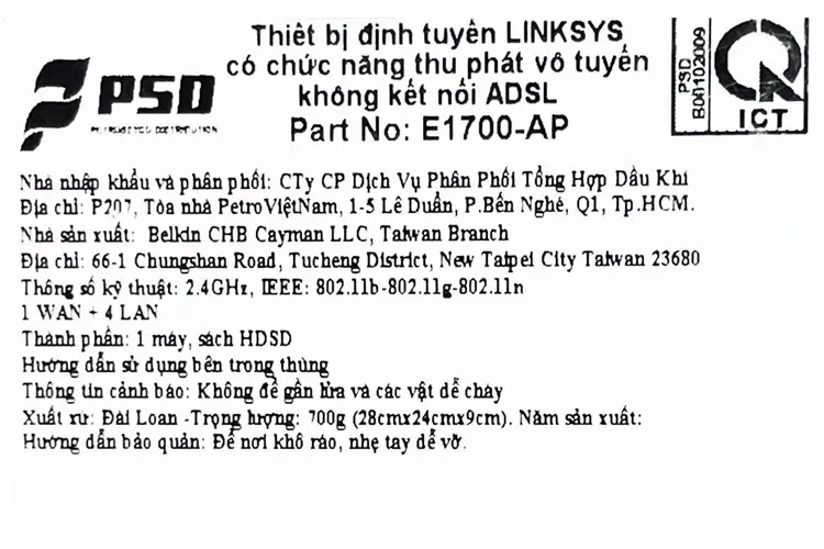 Thông số kỹ thuật Router Wifi Chuẩn N Linksys E1700