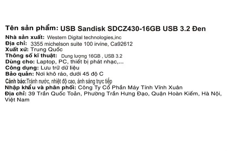 Thông số kỹ thuật USB 3.2 16GB Sandisk SDCZ430