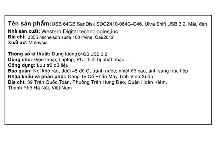 Thông số kỹ thuật USB 3.2 64GB Sandisk CZ410