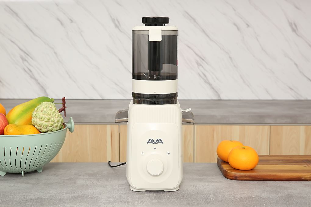 - Máy ép chậm AVA hoạt động với tốc độ xoay 50 vòng/phút, giúp giữ được nhiều enzyme, vitamin và khoáng chất có lợi trong rau củ, trái cây. Cơ chế ép chậm cũng giúp hạn chế tối đa bọt khí, đảm bảo nước ép có chất lượng tươi ngon.