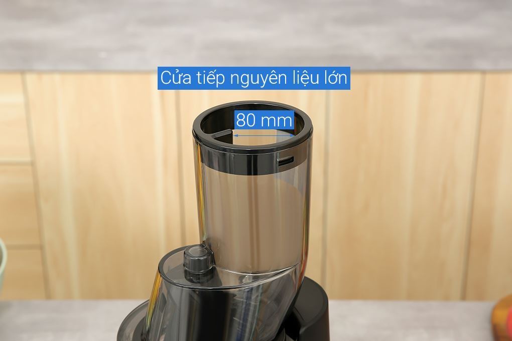 Máy ép BlueStone sở hữu ống tiếp nguyên liệu lớn 80 mm, đủ lớn để cho vừa các loại trái cây nguyên quả cỡ vừa như táo, cà chua,... mà không cần phải cắt nhỏ, từ đó tiết kiệm đáng kể thời gian sơ chế.