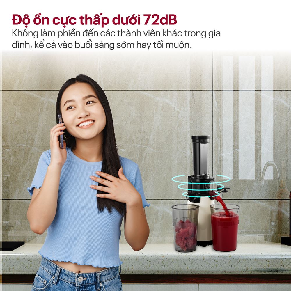 Là một chiếc máy ép trái cây thế hệ mới, FUJIHOME SJ06 hoạt động theo cơ chế ép chậm với tốc độ xoay từ 45 - 80 vòng/phút. Tốc độ lý tưởng này giúp hạn chế tối đa quá trình oxy hóa do nhiệt và ma sát, giữ nguyên các dưỡng chất trong trái cây.