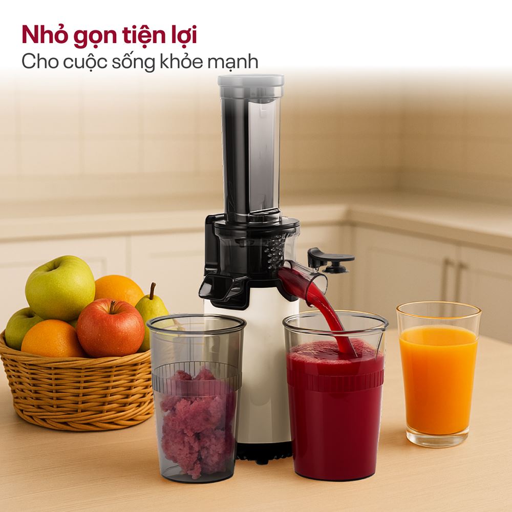 Thức uống dinh dưỡng từ trái cây tươi luôn là lựa chọn tuyệt vời để tăng cường sức khỏe mỗi ngày. Với máy ép chậm FUJIHOME SJ06, bạn sẽ dễ dàng chuẩn bị những ly nước ép thơm ngon, giữ trọn dưỡng chất chỉ trong tích tắc. Chiếc máy nhỏ gọn, màu trắng đen trang nhã này không chỉ là trợ thủ đắc lực cho gian bếp hiện đại mà còn mang đến trải nghiệm ép tiện lợi và hiệu quả.