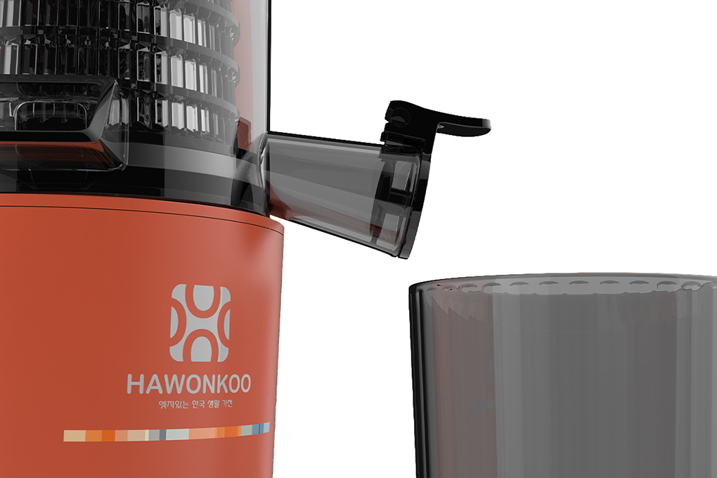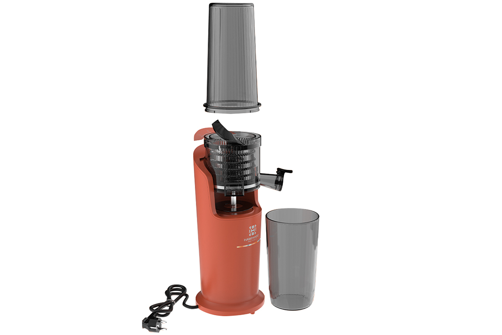 - Máy ép trái cây Hawonkoo chế tác gọn gàng, chắc chắn, gam màu cam nổi bật, tạo điểm nhấn thời thượng cho gian bếp gia đình.