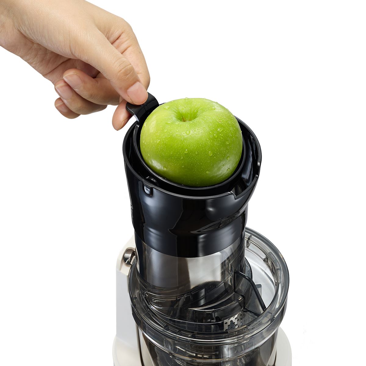 Miệng ống tiếp nguyên liệu có đường kính rộng 78mm là một điểm cộng lớn. Với kích thước này, bạn có thể cho nguyên cả quả táo, ổi, hoặc nhiều loại rau củ mà không cần thái nhỏ, giúp rút ngắn đáng kể thời gian chuẩn bị và ép nước.