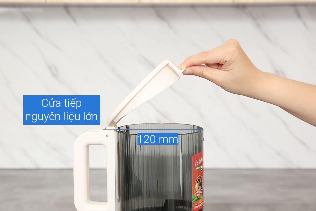 + Ống lớn có đường kính 120 mm: dùng để ép nhanh các loại trái cây nguyên trái như táo, lê, cam mà không cần cắt nhỏ nhiều, giúp tiết kiệm thời gian chuẩn bị.
