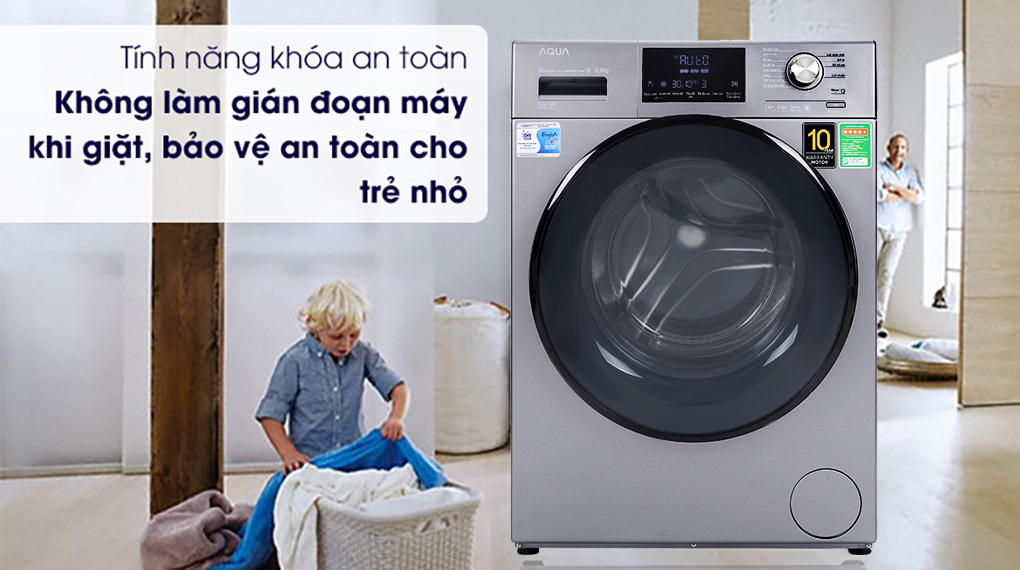 Ngoài chức năng tự khóa chặt cửa khi máy giặt hoạt động để tránh tràn nước ra ngoài, hãng còn trang bị thêm tính năng khóa an toàn, tính năng này sẽ tự động khóa các chương trình máy giặt đang chạy nhằm tránh tình trạng các bé nhỏ hay nghịch phá nút bấm máy giặt, gây nguy hiểm cho bé và làm gián đoạn quá trình giặt.