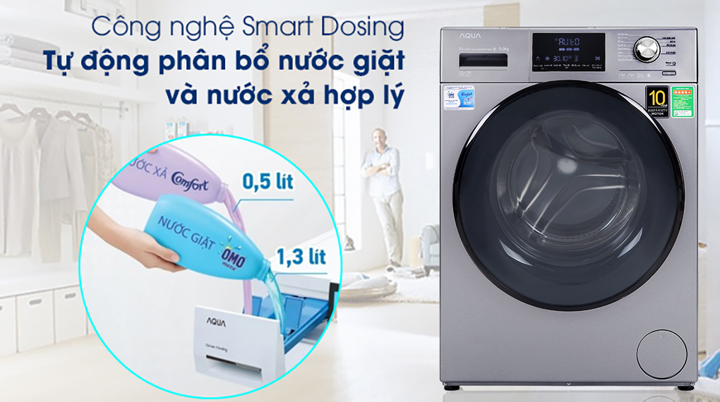 Chế độ tự động phân bổ nước giặt, mk đổ 1 lần mà giặt hơn 2 tháng nay trên dưới 30 lần giặt mà khay vẫn nguyên nước giặt, nhìn vào lồng giặt và nước xả thải ko thấy có bọt, như kiểu chỉ giặt nước ko có xà phòng nên quần áo giặt xong vẫn bẩn ko sạch tý nào