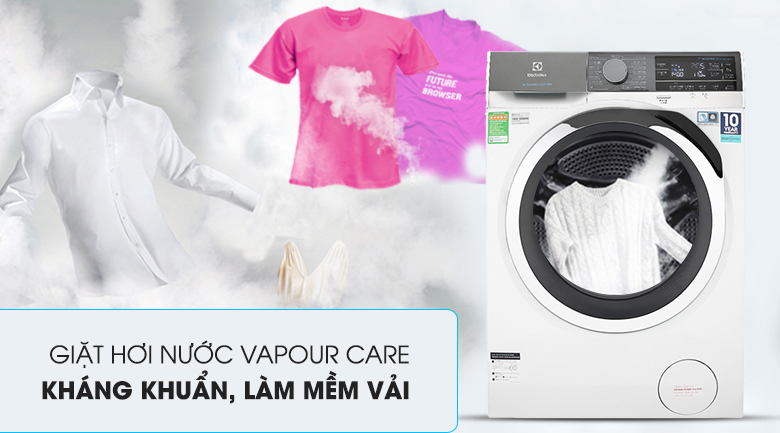Với tính năng Vapour Care, nhiệt độ hơi nước có thể đạt đến 70 độ C, giúp cho việc kháng khuẩn quần áo được tốt hơn sau khi giặt.