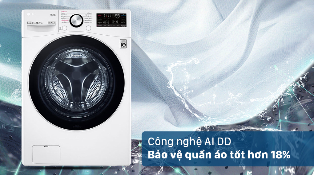 Công nghệ AI DD được tích hợp động cơ truyền động trực tiếp Intello DD và công nghệ trí thông minh nhân tạo AI, có khả năng nhận diện được khối lượng và độ mềm của quần áo, từ đó giúp chuyển động lồng giặt phù hợp để giặt sạch các vết bẩn bám trên áo quần, bảo vệ quần áo tốt hơn 18%.