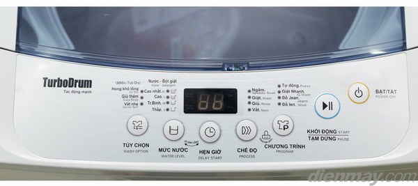 Nắp đậy được làm bằng kính chịu lực có thể mở rộng giúp bạn lấy quần áo ra một cách dễ dàng. Đồng thời, trong suốt thời gian giặt, máy sẽ báo động khi nắp mở ra quá 5 giây để cảnh báo trẻ không nên đến gần. Bên cạnh đó, nắp kính trong suốt này còn có khả năng chịu lực và chống xước thật tốt. Ngoài ra, bảng điều khiển tiếng việt được thiết kế tiện lợi giúp bạn thao tác dễ dàng.