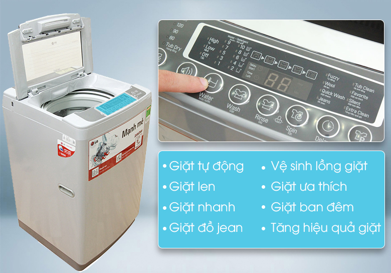 Bảng điều khiển của máy giặt LG sử dụng các hình minh họa dễ hiểu cùng nhiều chương trình giặt để bạn và gia đình có thể thao tác dễ dàng tùy chọn theo nhu cầu giặt giũ cũng như loại quần áo của mình.