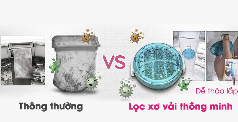 Với bộ lọc xơ vải kháng khuẩn, bền đẹp tích hợp trong máy giặt LG WF-S8019DB, bạn không còn phải lo lắng đến việc phải thay túi lọc xơ vải thường xuyên. Màng lọc nhỏ gọn, dễ tháo lắp để vệ sinh định kì.