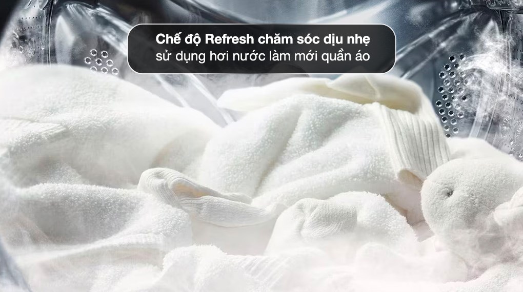 Công nghệ giặt hơi nước Refresh: làm phẳng vải, khử mùi hôi và bụi bẩn bám ngoài, giữ quần áo thơm tho, ít nhăn sau khi giặt.