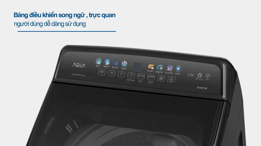 Máy giặt Aqua AWM11-B2158L(B) với khối lượng lớn phù hợp cho gia đình đông người trên 7 thành viên. Sản phẩm tập trung vào khả năng vận hành ổn định bằng động cơ DD Inverter, dễ sử dụng và tiết kiệm điện năng trong quá trình sử dụng lâu dài.