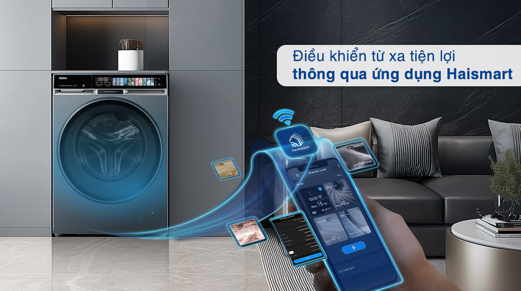 - Kết nối Wi-Fi và điều khiển từ xa qua ứng dụng Haismart, cho phép quản lý và theo dõi mọi hoạt động giặt dễ dàng mọi lúc, mọi nơi.