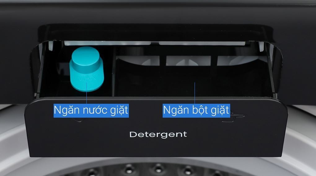 Không khác với các máy giặt lồng đứng còn lại, ngăn nước giặt và bột giặt của máy giặt Hisense cũng được đặt ở vị trí bên trên lồng giặt có chú thích “Detergent”. Bạn chỉ cần kéo nhẹ ngăn ra, đổ lượng nước giặt phù hợp với lượng quần áo là có thể yên tâm để máy giặt xử lý các bước tiếp theo. Lưu ý khi thêm nước giặt, lượng nước không được tràn ra nắp.