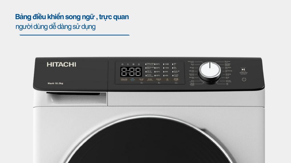 Máy giặt Hitachi Inverter 10.5 kg BD-1054HVOW có khối lượng giặt 10.5 kg phù hợp gia đình đông từ 7 thành viên trở lên. Máy trang bị Inverter vận hành êm, tiết kiệm điện, kết hợp giặt nước nóng và giặt hơi nước giúp diệt khuẩn, sạch sâu mà không bị mất phom dáng.