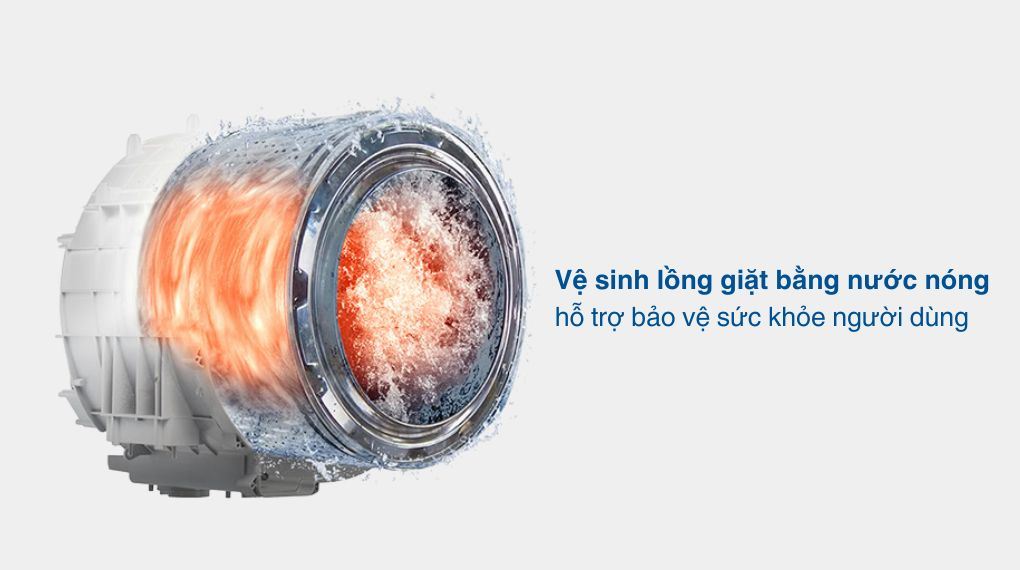 Vệ sinh lồng giặt bằng nước nóng giúp tăng khả năng tiêu diệt vi khuẩn tích tụ, hỗ trợ bảo vệ sức khỏe gia đình khi thường xuyên sử dụng máy giặt.