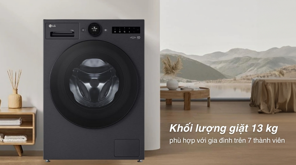 Máy giặt LG AI DD Inverter 13 kg FX1413S3KA với công nghệ AI DD 2.0, TurboWash360, giặt hơi nước Steam và động cơ truyền động trực tiếp Inverter phù hợp với gia đình đông người cần xử lý khối lượng đồ lớn mỗi lần giặt. Sự kết hợp giữa nhiều chương trình chăm sóc vải, khả năng kết nối LG ThinQ và các tiện ích hỗ trợ sử dụng hằng ngày giúp thiết bị trở thành lựa chọn đáng cân nhắc cho không gian giặt phơi hiện đại.