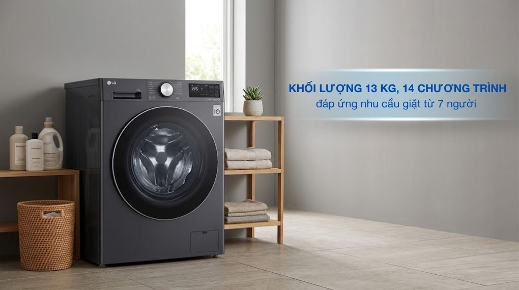 LG FX1413S5G là mẫu máy giặt tiện dụng cho gia đình trên 7 người nhờ sức chứa lớn 13 kg và khả năng bảo vệ vải thông minh bằng AI. Sản phẩm đáp ứng tốt các tiêu chí về giặt sạch, vận hành êm và tối ưu chi phí, giúp việc chăm sóc quần áo số lượng lớn hàng ngày trở nên đơn giản và hiệu quả hơn.