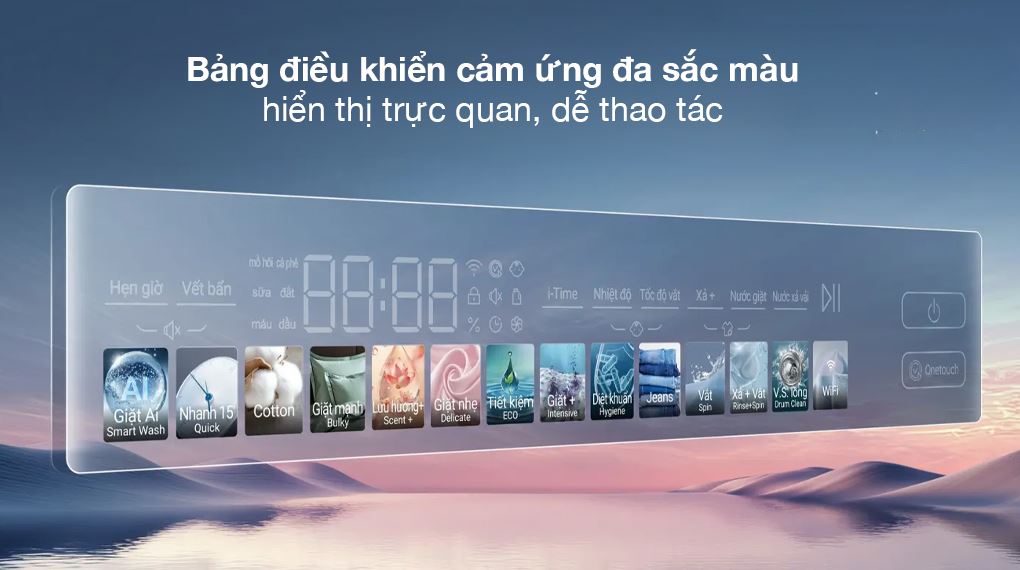 • Bảng điều khiển cảm ứng song ngữ hiển thị rõ ràng, hỗ trợ thao tác nhanh chóng và tiện lợi.