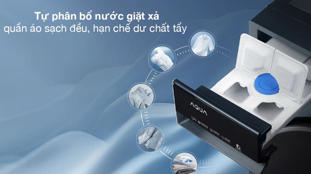 Tự động phân bổ nước giặt giúp định lượng chất giặt tẩy theo khối lượng đồ, hạn chế dư chất tẩy bám lại gây cứng vải hoặc lãng phí.