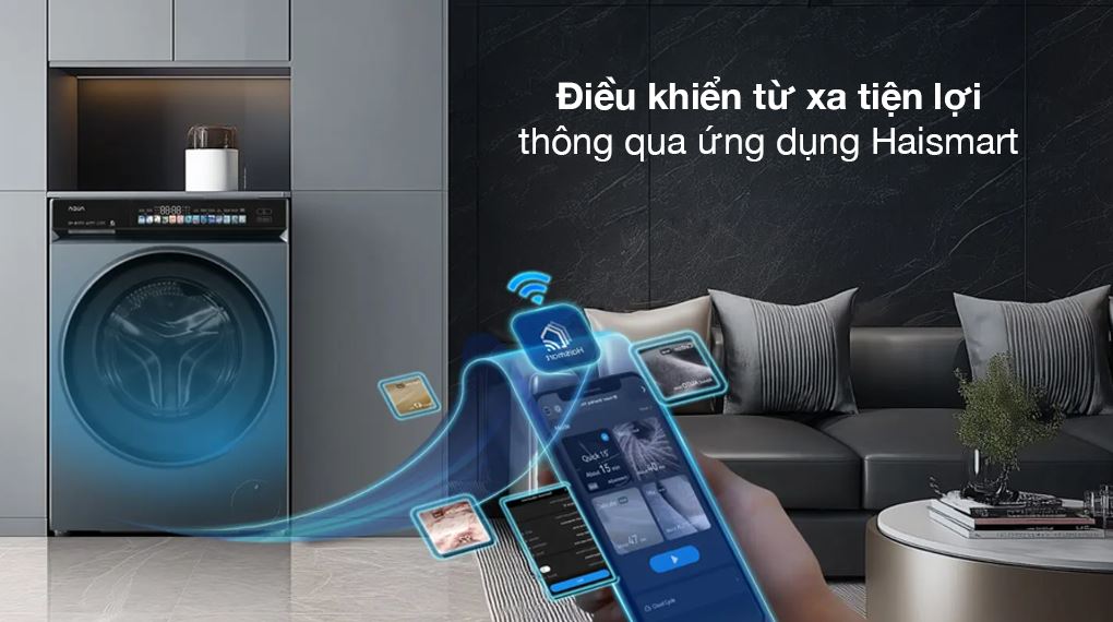 Khóa trẻ em, hẹn giờ giặt và điều khiển từ xa qua điện thoại thông minh giúp máy dễ dàng hòa vào nhịp sinh hoạt bận rộn của gia đình. Bạn có thể cài đặt để mẻ giặt kết thúc trùng thời điểm về nhà, hoặc kiểm tra trạng thái máy khi đang ở phòng khác mà không cần ra tận nơi.