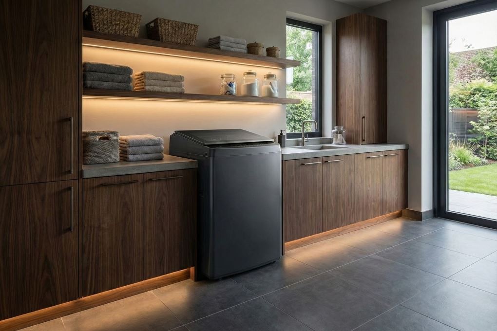 Khả năng giặt 17 kg quần áo là điểm cộng lớn của model này, phù hợp với gia đình trên 7 người hoặc những nhà thường giặt chăn ga, rèm cửa, đồ dày vào cuối tuần. Bạn có thể gom quần áo của cả nhà vào một lần giặt thay vì chia nhỏ nhiều mẻ, tiết kiệm đáng kể thời gian và chi phí vận hành.