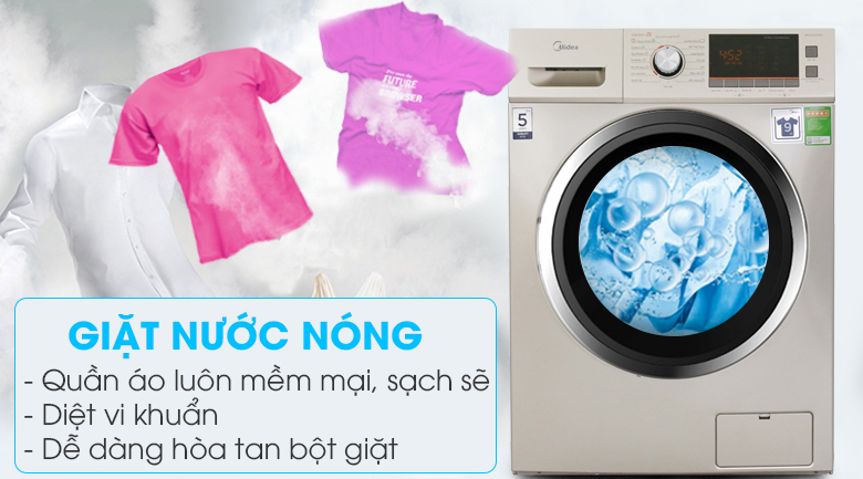 Làn da của trẻ nhỏ rất nhạy cảm, chính vì vậy chiếc máy giặt sấy Midea MFC90-D1401 được trang bị thêm tính năng giặt nước nóng có khả năng gia nhiệt lên đến 90 độ C, tiêu diệt mọi vi khuẩn, bụi bẩn cũng như tác nhân gây dị ứng trên quần áo, bảo vệ cho làn da của trẻ em trong gia đình. Với chế độ giặt nước nóng dễ dàng hòa tan hoàn toàn bột giặt, giúp quần áo được giặt sạch sẽ hơn mà không lo bám cặn, giữ cho quần áo luôn mềm mại.