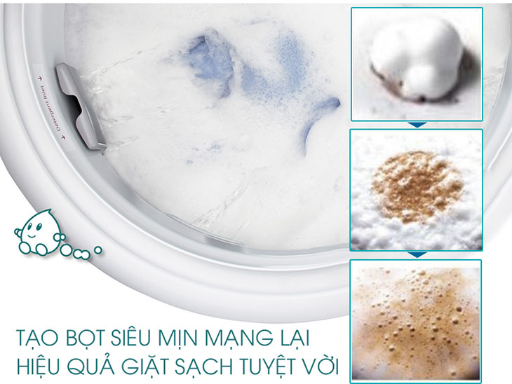 Không chỉ loại bỏ hoàn toàn cặn bột giặt còn bám trên quần áo, công nghệ Active Foam của chiếc máy giặt này còn giúp bọt xà phòng thấm sâu vào quần áo, đánh bay mọi vết bẩn cứng đầu, mang lại hiệu quả giặt tẩy tối ưu nhất.