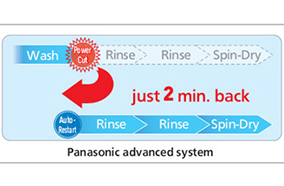 Tính năng tự khởi động lại Auto-RestartNếu trong quá trình giặt bị mất điện, chức năng Auto-Restart sẽ giúp máy tự động khởi động lại ngay khi có điện. Thay vì bạn phải bắt đầu cài đặt chương trình thêm một lần nửa, tự động khởi động lại quay ngược lại hai phút trước khi mất điện. Điều này giúp bạn tiết kiệm thời gian và tiết kiệm điện hơn. |