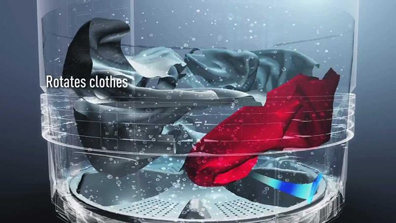 Công nghệ xả nước Aqua Spin Rinse: Công nghệ xả nước Aqua Spin Rinse được coi là sự kết hợp nhịp nhàng giữa chế độ quay của lồng giặt và quá trình xả nước từ vòi phun. Lồng giặt sẽ tự động xoay đều khi nước được xả vào lồng giặt để quần áo có thể ngấm đều nước một cách nhanh chóng, nhờ đó giúp rút ngắn thời gian cho việc giặt giũ, đồng thời tiết kiệm nước tốt hơn so với chế độ thông thường.