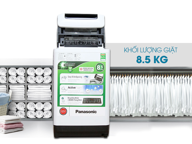 Máy giặt Panasonic NA-F85G1WRV có thiết kế máy giặt cửa trên độc đáo, nổi bật phù hợp với nhiều không gian nội thất khác nhau.