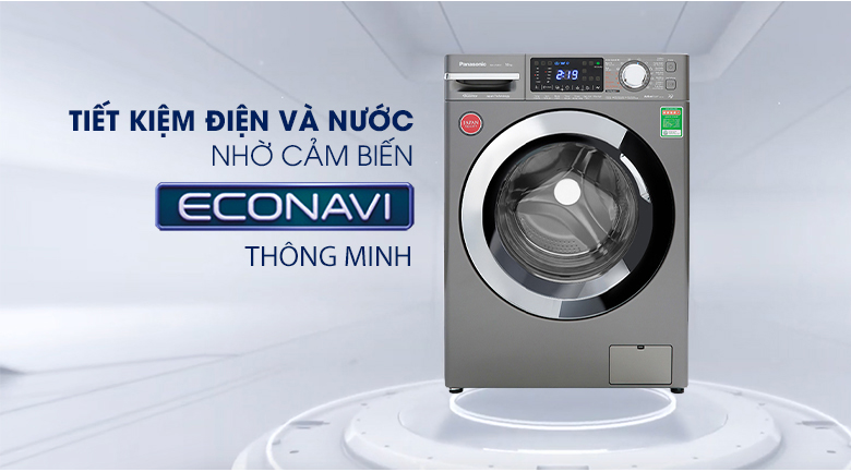 Nhờ cảm biến Econavi được trang bị trên máy giặt, Panasonic NA-V10FX1LVT sử dụng hiệu quả nước và điện trong mỗi lần giặt, khi có khả năng tự động điều chỉnh vận hành, cảm biến nhiệt độ nước, khối lượng quần áo và chất liệu giặt tẩy.