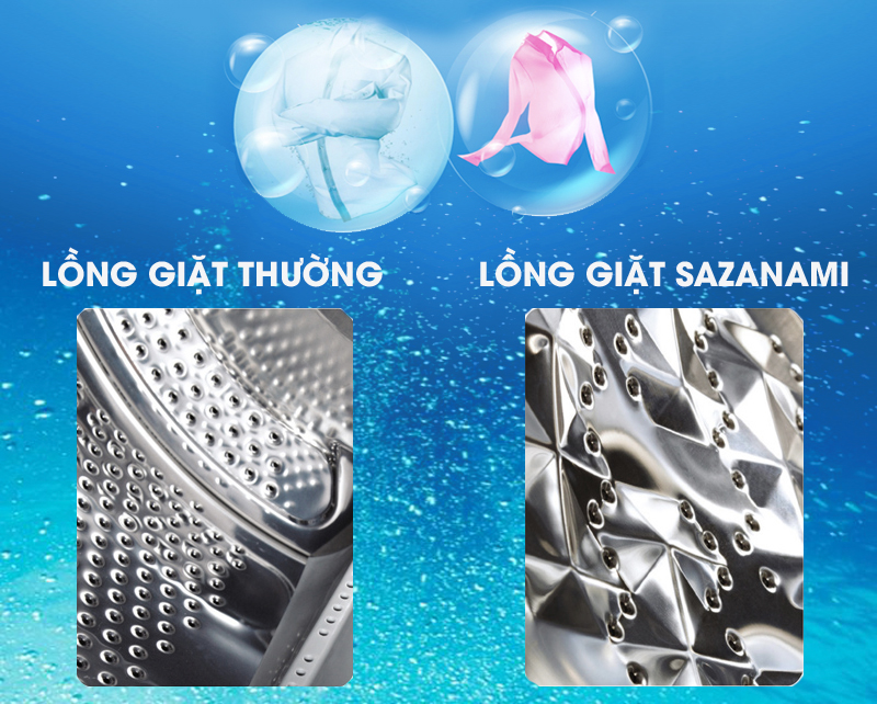Máy giặt sấy Panasonic NA-VX93GLWVT có thiết kế đẳng cấp cùng lồng giặt Sazanami. Loại lồng giặt này được cải tiến ở bề mặt bên trong, tăng khả năng chà xát quần áo đồng thời giữ sợi vải ít bị tổn hại hơn. Với khối lượng giặt đến 10 kg, chiếc máy giặt sấy Panasonic này phù hợp với cả những gia đình trên 6 thành viên.