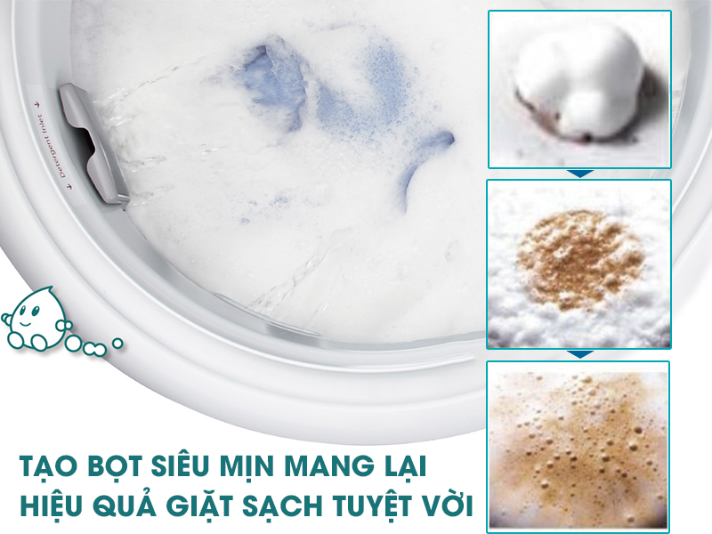 Máy giặt sấy Panasonic NA-VX93GLWVT sở hữu hệ thống Active Foam tiên tiến chỉ có ở Panasonic. Công nghệ này tạo bột giặt thành bọt mịn bao phủ lên quần áo, giúp các chất hoạt động bề mặt của bột giặt bao phủ rồi đánh sạch vết bẩn.