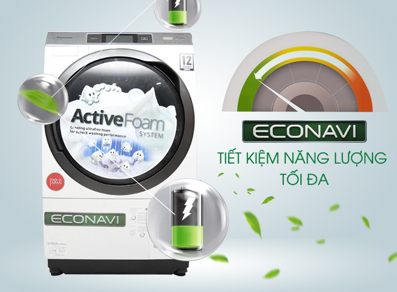 Với cảm biến Econavi, máy giặt sấy Panasonic NA-VX93GLWVT không chỉ tiết kiệm điện cho gia đình bạn mà còn nhận biết xung quanh để từ đó đưa ra hoạt động tối ưu nhất cho máy giặt sấy.