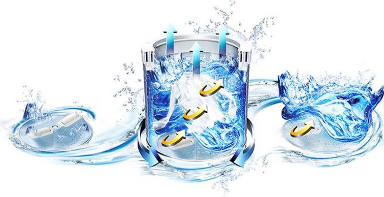 Đồng thời máy giặt còn trang bị chức năng vắt cực khô tạo ra chuyển động tròn với tốc độ nhanh để cải thiện tính năng vắt và giúp máy giặt tiết kiệm điện năng vì không sử dụng máy nóng.