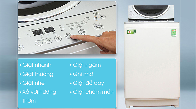 Máy tiết kiệm điện, hoạt động êm ái. Chế độ giặt thông minh sạch sẽ, hiển thị màn hình rõ