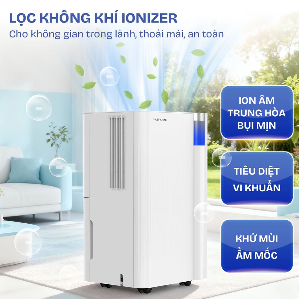 FUJIHOME DH10NEW là lựa chọn hoàn hảo cho những ai đang tìm kiếm một thiết bị hút ẩm đa năng, hiệu quả và tiện lợi. Với khả năng hút ẩm 10 lít/ngày, tích hợp sấy quần áo, lọc không khí Ionizer và loạt tiện ích thông minh, sản phẩm không chỉ giúp kiểm soát độ ẩm cho không gian 15 - 20m² mà còn góp phần nâng cao chất lượng sống cho gia đình bạn.