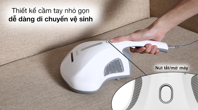 Khi người dùng nâng nhẹ máy hoặc hoàn toàn máy hút bụi lên thì tia UV sẽ tự động tắt. Bên cạnh đó máy được trang bị nút micro touch bên dưới tay cầm, có chức năng tắt tia UV khá tiện lợi, đảm bảo an toàn cho người dùng.