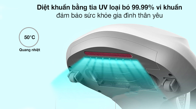 Đồng thời máy còn trang bị hệ thống quang nhiệt nóng 50°C có khả năng ức chế sự sinh trưởng của vi khuẩn đảm bảo sức khỏe cho gia đình.