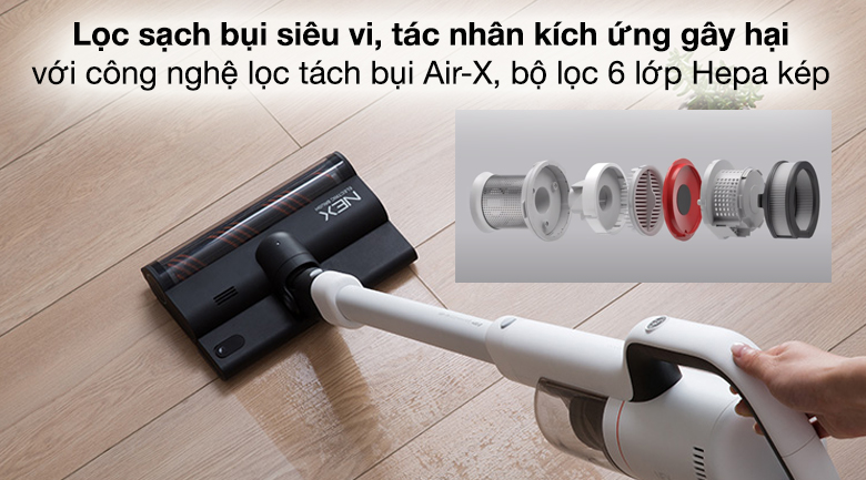Máy hút bụi Roidmi mang đến chất lượng làm sạch tốt nhất với bộ lọc 6 lớp có lớp lưới lọc kim loại chuyên dùng lọc thô lọc hạt lớn, bộ lọc Hepa kép lọc các bụi siêu vi và các tác nhân có hại khác mạnh mẽ, trả lại cho không gian gia đình trong lành, sạch sẽ hơn.