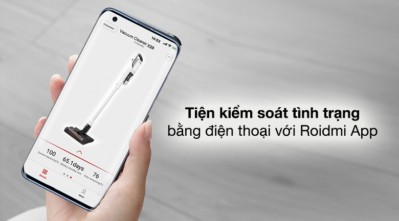 Thông qua ứng dụng bạn có thể nắm bắt và tùy chỉnh các chỉ số như dung lượng pin, lực hút, thời gian hút, tình trạng thùng rác, thông báo nhắc nhở thay bộ lọc và những thông báo về tình trạng máy khác.